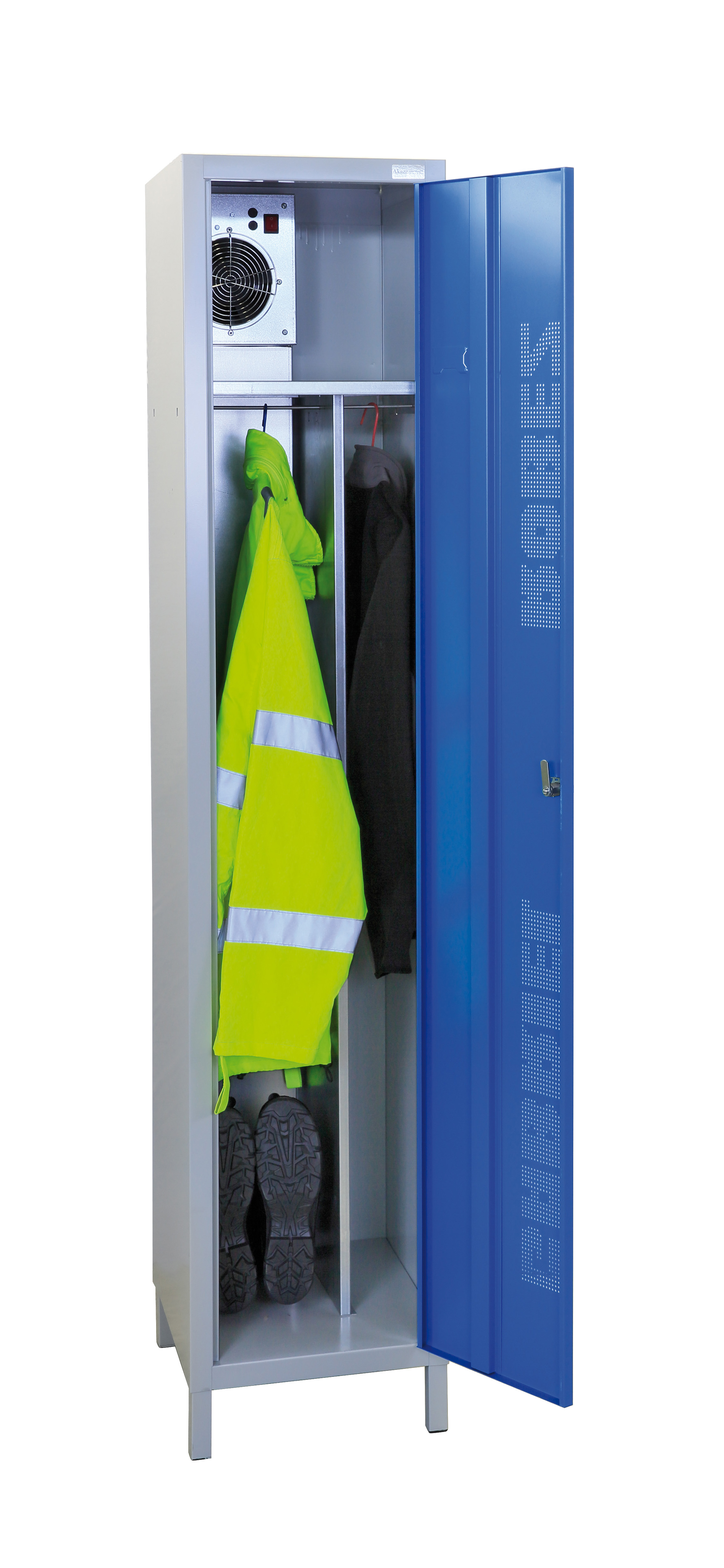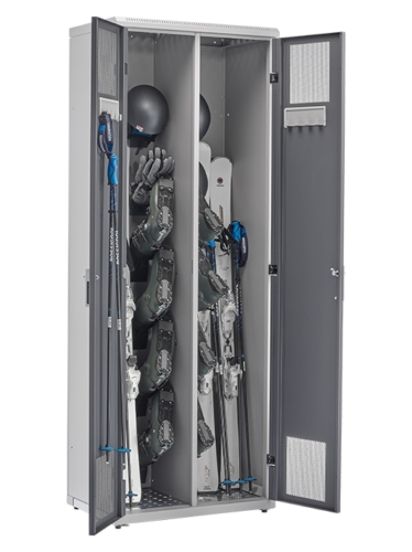 Images. Armoire séchante à vêtement collective. Ensemble de vestiaires individuels séchants muni d'un système de ventilation d'air ambiant.