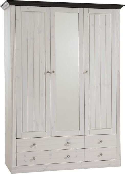 Armoire 3 portes 5 tiroirs chamonix en pin massif.