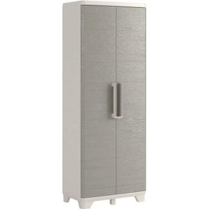 • armoire de jardin pour l'extérieur ultra résistante en résine • armoire très esthétique aspect bois poncé laissant apparaître les veinages pour se rapprocher au plus de l'aspect authentique et vieilli du bois • modèle robuste et durable en polypropylène extrudé 20 mm • double porte disposant d'un.